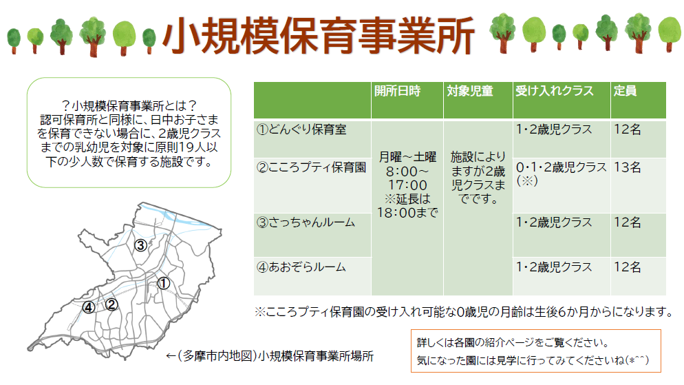 小規模保育事業所は、認可保育所と同様に日中お子さんをご家庭で保育できない場合に2歳児クラスまでの乳幼児を対象に原則19人以下の少人数で保育する施設です。