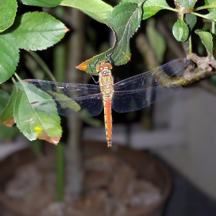 | 203 | 9月29日 | 多摩市和田1261番地 百草団地 | ウスバキトンボ | 日が変わったばかりの深夜、鉢植え姫リンゴの木にぶら下がるように止まっていました。鉢を動かしても微動だにせず、写真が撮りやすかったです。明け方にはいなくなっていました。 | ○ |