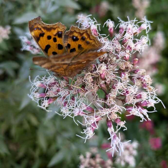 | 208 | 11月1日 | 中沢2丁目 | ヒョウモン蝶 | 11月に入って寒い日もありますがお天気がいいとフジバカマにヒョウモン蝶が来ます。ヒョウモン蝶は寒さに強いのでしょうか? | ○ |