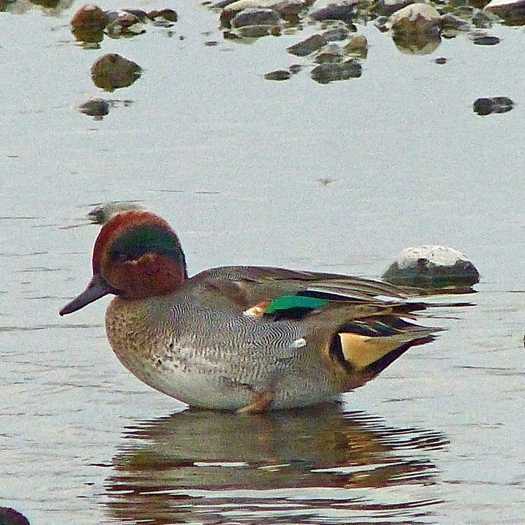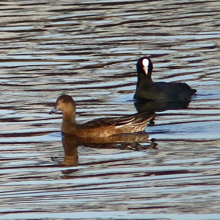 | 64 | 11月6日 | 一の宮公園から望む多摩川 | ヒドリガモ(オス) | オオバンの観察に行ったら、色の違う鳥が一羽混じっていた。あれこれ調べて、ヒドリガモの冬羽(エクリプス)だとわかった。繁殖期でないカモ類のオスは判りにくい。 | ○ |