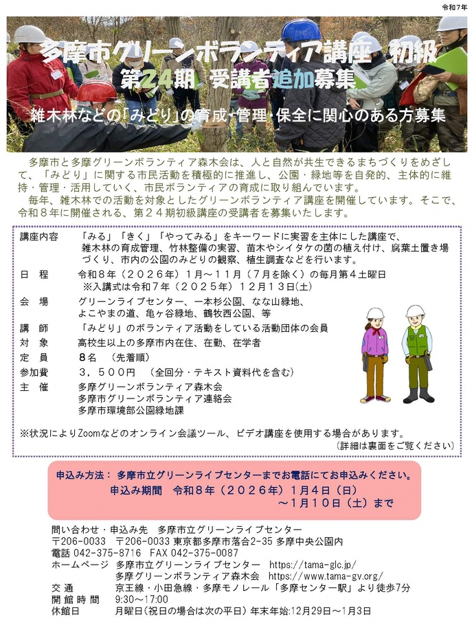 【追加募集】多摩市グリーンボランティア講座〔初級第24期〕